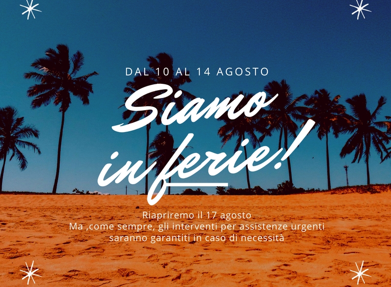 L'ufficio sarà chiuso per la settimana di Ferragosto, nello specifico dal 10. Torneremo al lavoro il 17 agosto.